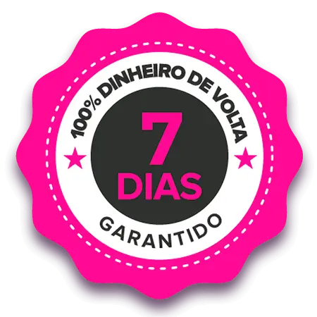 Fique tranquila! Se por algum motivo você não gostar do E-book poderá solicitar o reembolso total do valor a qualquer momento (dentro do prazo de 7 dias após a compra).