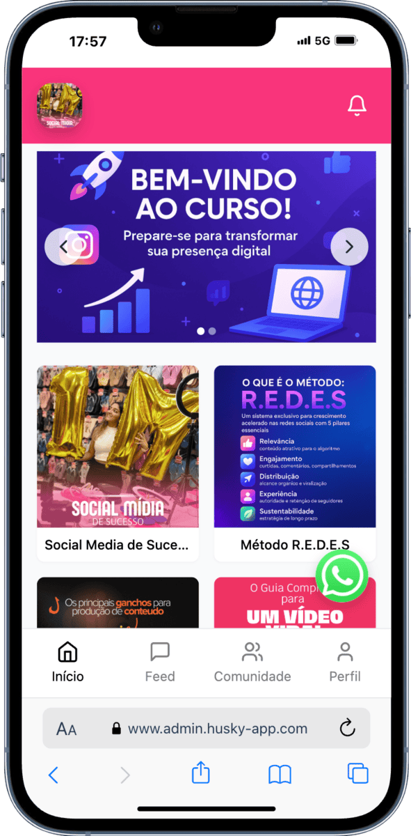 5 módulos completos com 24 capítulos práticos, feitos especialmente para empreendedoras que querem usar as redes sociais para vender mais:
